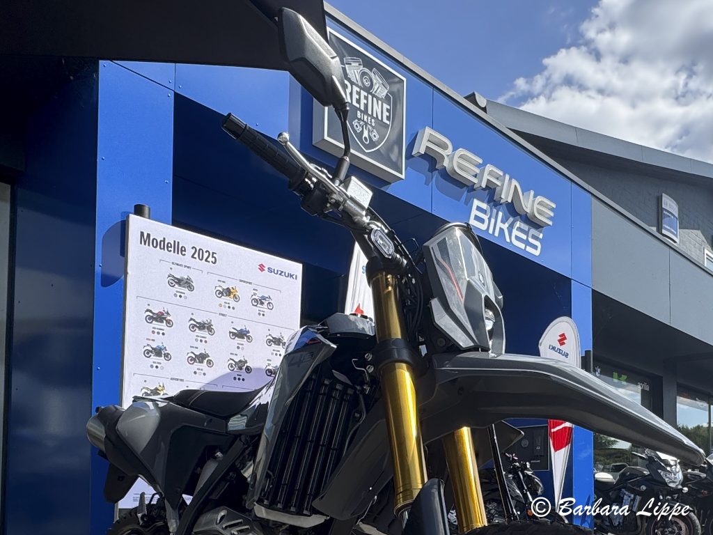 Ebenso wurde mit der DR-Z4 SM ein Klassiker modernisiert. Das Gewicht von 154 Kilogramm und die 400 ccm versprechen viel Fahrspaß. Dieses Fahrzeug wird als limitierte „First Edition“ ab Oktober 2025 ausgeliefert. Die ersten Bikes sind bereits verkauft. Soll nach Aussage von Karsten Schäfer, Inhaber von Refine Bikes, bald wieder verfügbar sein.