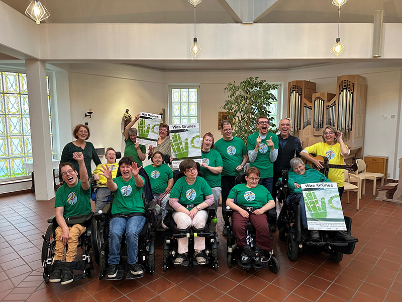 Der Titel „Was Grünes“ zeigt schon, dass das inklusive Projekt um die Natur, die Pflanzen, den Menschen und die Zukunft kreist. „Ohne die Pflanzen wäre ein Leben auf diesem Planeten nicht möglich“, fasst Regisseurin Anne Zühlke vom Theater-Projekt des Daktylus e.V. Berlin die Inszenierung zusammen. Seit einem Jahr entwickeln sie und ihr Kollege Stephan Weßeling mit den jungen Menschen aus Maria Veen das Stück. Es gibt intensive Probewochenenden und Workshops mit tatkräftiger Unterstützung von Lehrer:innen, Ausbilder:innen, Gruppenleitungen.