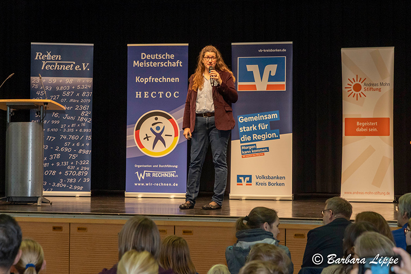 Die drei Meisterschaften wurden am Samstagvormittag im RekenForum ausgetragen. Rund 74 Teilnehmer von acht Bundesländern und der Schweiz im Alter von 7 bis 68 Jahren nahmen daran teil. Bereits zu Beginn des Wettbewerbs war die Konzentration zu spüren. Jeder verhielt sich ruhig und bereitete sich innerlich darauf vor. Stifte, Getränke und Traubenzucker wurden auf dem Tisch bereitgelegt. Einige hatten einen Gehörschutz mitgebracht, um sich so besser konzentrieren zu können. Oliver Spring vom Verein „Reken rechnet“ begrüßte die Anwesenden. Vor der Verteilung der Aufgabenmappen wiesen die Vorsitzenden des Vereins „Wir rechnen“, Jan van Koningsveld und Elke Kuge, nochmal auf die Regularien hin. Bei der Deutschen Meisterschaft im Kopfrechnen wurden Aufgaben, beispielsweise aus den Bereichen Addition und Subtraktion, Multiplikation und Division, Primfaktorzerlegung sowie Quadrat- und Kubikwurzeln gestellt, die in der vorgegebenen Zeit nicht alle lösbar sind. Der Schwierigkeitsgrad richtete sich nach der jeweiligen Altersgruppe.