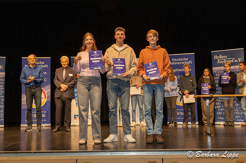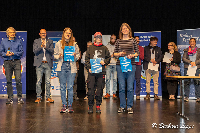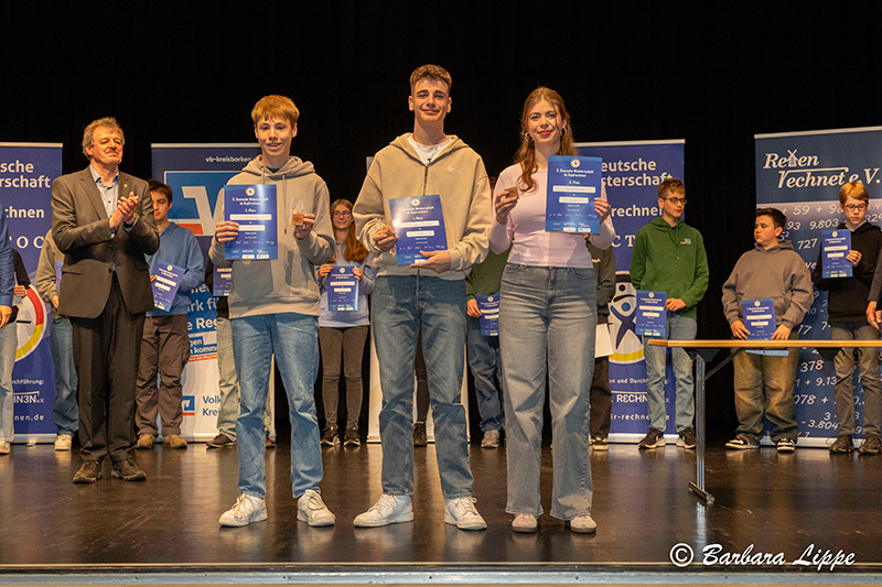 Am Sonntag wurden im RekenForum die Urkunden verteilt und die Sieger der Meisterschaften bekanntgegeben. Zu den Gratulanten gehörten Bürgermeister Manuel Deitert, der stellvertretende Landrat des Kreises Borken Otto Harks und Heribert Woestmann, stellvertretender Vorsitzender der Stiftung Internationales Centrum für Begabungsforschung (icbf).