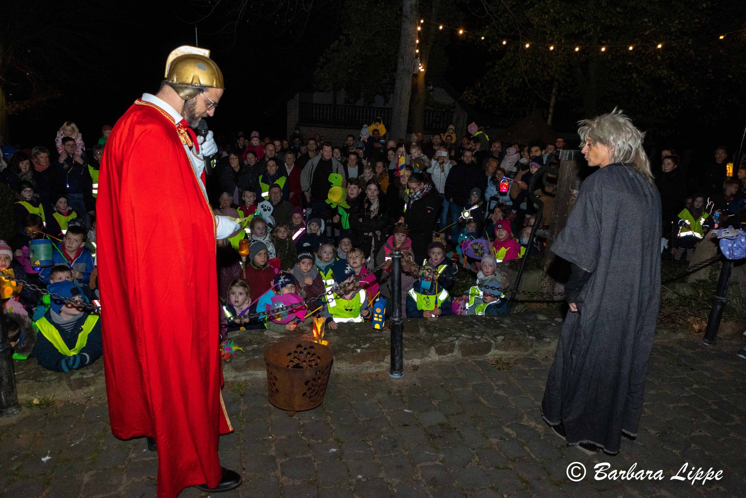 Dort wird unter Laternenleuchten mit gemeinsamem Gesang und der Aufführung des Martinsstücks vor der Mühle gestartet.
