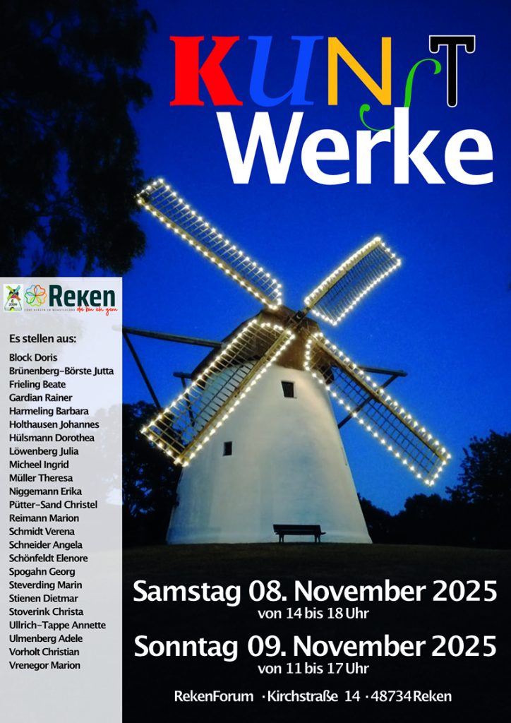 01.11.2025 Reken (pm). Vom Samstag, 8. November bis zum Sonntag, 9. November 2025 findet im RekenForum die jährlich wiederkehrende große Kunstausstellung mit dem Titel »KunstWerke« statt.