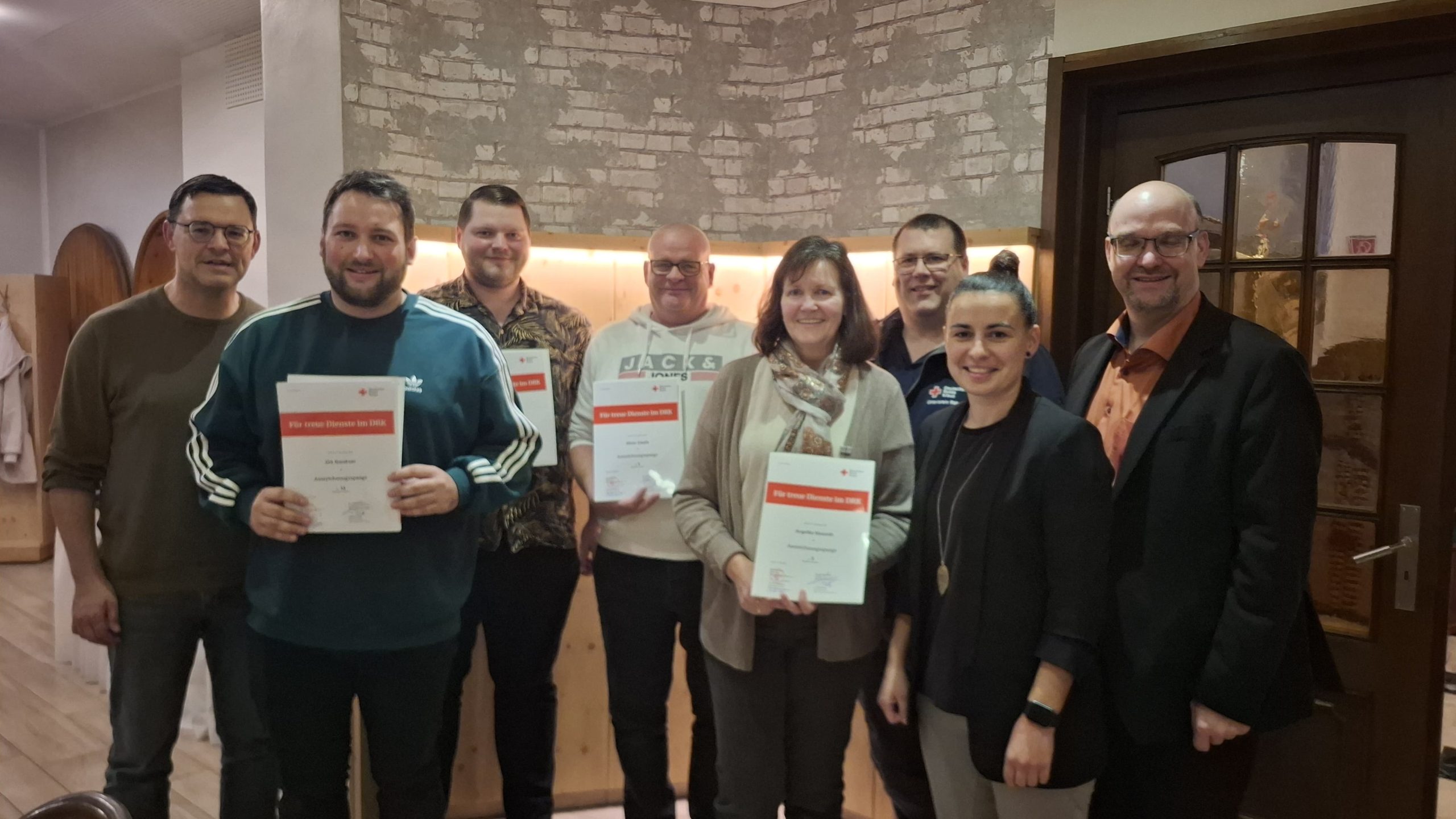 15.11.2025 Reken (pm). Am 7. November 2025 fand die Jahreshauptversammlung des Deutschen Roten Kreuzes (DRK) Ortsverein Reken im Beisein zahlreicher Mitglieder statt. In den Tätigkeitsberichten für das Jahr 2024 konnten unter anderem folgende Zahlen und Fakten präsentiert werden: Es wurden 33 Erste-Hilfe-Kurse durchgeführt, in denen 465 Personen ausgebildet wurden. Das DRK Reken war bei zahlreichen Sanitätsdiensten aktiv, wie zum Beispiel der Kino Nacht am Benediktushof, dem Karnevalsumzug, dem Sportfest der Rekener Grundschulen und dem Rekener Oktoberfest. Die regelmäßigen Dienstabende finden in der Regel dienstags statt. Beim Jugendrotkreuz finden die Gruppenstunden, je nach Altersgruppe, mittwochs oder donnerstags statt. Im Jahr 2024 erfolgte mit Xandra Orfali die Wahl einer neuen Jugendrotkreuzleitung. Ebenso fand ein Zeltlager an der Sierksfelder Schule in Coesfeld statt. Ein Highlight war das Rettungswachen-Wochenende in Zusammenarbeit mit der Jugendfeuerwehr Reken. Für die Blutspende konnten im Jahr 2024 17 Blutspende-Termine mit 1274 Spendern, darunter 49 Erstspender, verzeichnet werden. Eine Ehrung der Blutspender fand im Eichenhof in Klein Reken statt, bei der die Helfer zu einem gemeinsamen Essen eingeladen wurden. Der Ortsverein Reken betreibt insgesamt 4 Kindertagestätten an 5 Standorten mit insgesamt 45 pädagogischen Mitarbeitern. Aktuell werden 188 Kinder betreut, davon 49 unter drei Jahren.