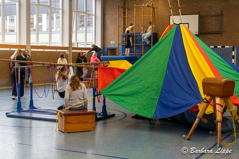Zum Austoben hatten Lehrer und Schüler in den Sporthallen einen Bewegungs- und Ballparcours aufgebaut.