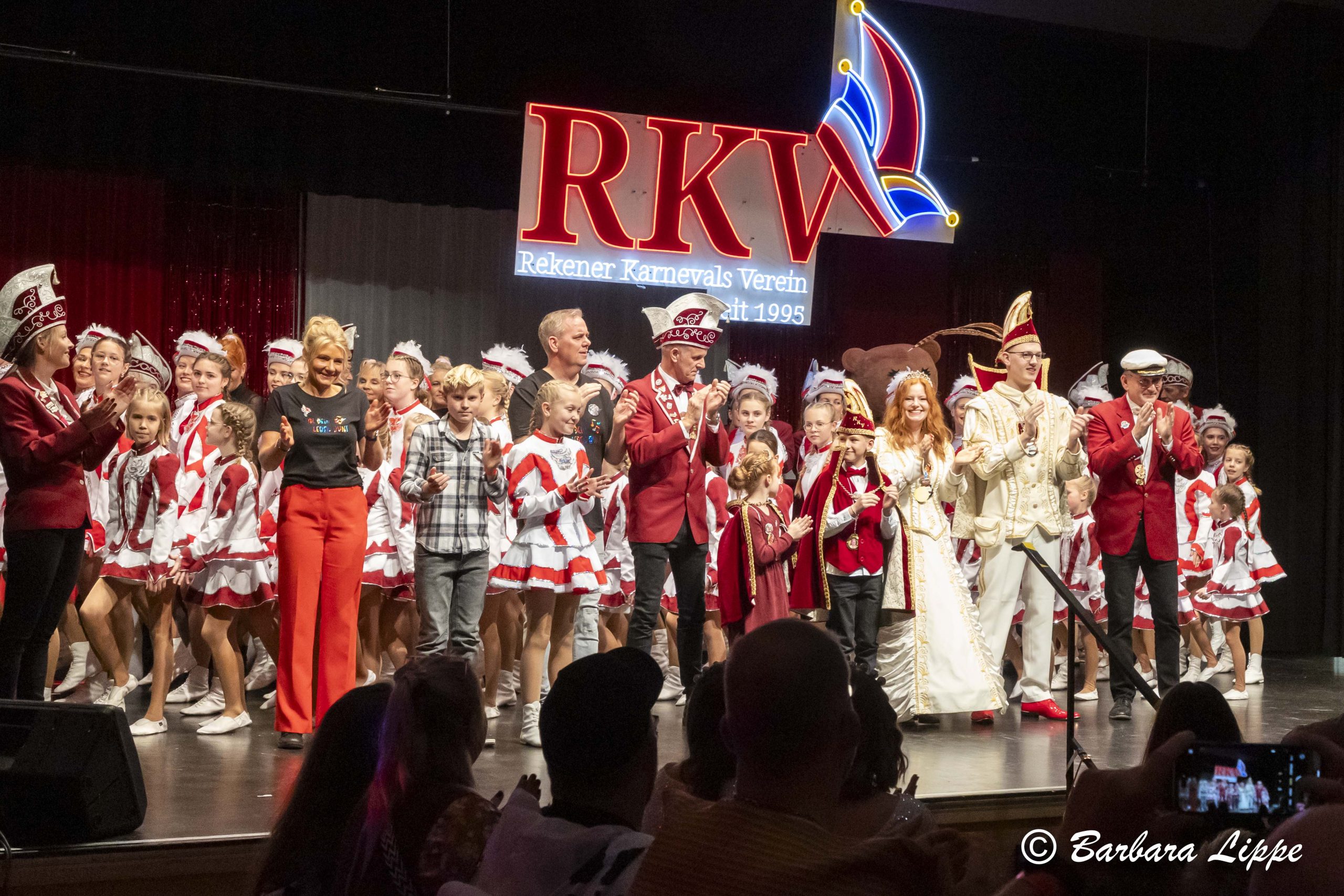 Der Rekener Karnevalsverein hatte wieder ein abwechslungsreiches Programm zusammengestellt. Die Junioren-, Junior- und Senioren-Garde sowie die Herzkirschen des RKV sorgten mit ihren Tanzdarbietungen für karnevalistische Stimmung. Ebenso begeisterte der Auftritt des Solomariechens Romina Pilz vom Raesfelder Carnevalsverein das Publikum. Zu den bekannten Karnevalsschlagern mit den Münsterländer Herzbuben, Klaus Günther und Volker Koop, schunkelte der ganze Saal.