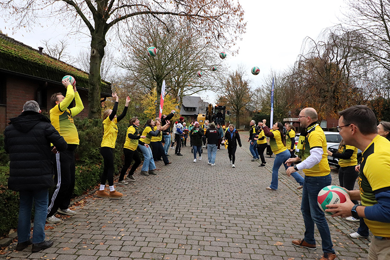 Beim Volleyball dreht sich alles ums Pritschen und Baggern. Deshalb sollte der VC Reken ein „pritschendes Spalier“ in Vereinsfarben aufstellen, durch das mind. 20 Personen mit einem „Bagger“ hindurchlaufen oder sogar fahren können. Die Vereinsmitglieder ließen sich nicht lange bitten und organisierten nicht nur zahlreiche Spielzeug- und Tretbagger, sondern setzten dem Ganzen die Krone auf: Ein echter Bagger rollte am Ende durch das Spalier! Selbst Volleybälle wurden über den Bagger gepritscht – ein spektakulärer Beweis für Zusammenhalt und Kreativität.