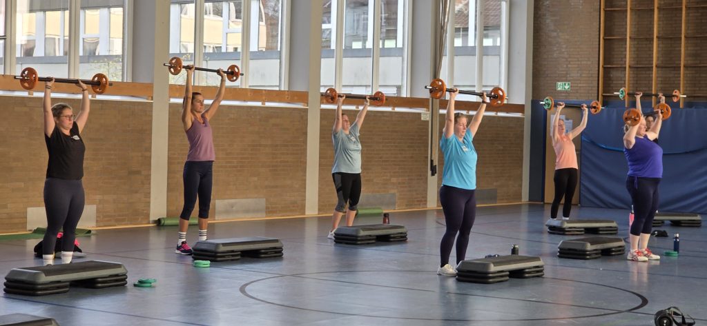 Genau dafür bot das vielseitige Kursprogramm den perfekten Rahmen. Intensive und kraftvolle Einheiten wie Strong Body, ein Workout mit Kleinhanteln, das die Kraftausdauer trainierte, ein Partnerinnen-Circle, das neben Kraft und Ausdauer auch das Trainieren und gegenseitige Motivieren im 2er-Team im Fokus hatte. Viel Laune vermittelten stimmungsvolle leichte Step-Aerobic Choreographien und das Christmas-Tabata, das durch die Musik nicht nur auf die bevorstehende Weihnachtszeit einstimmte, sondern auch für Überraschung und viele Lacher sorgte, als die Übungsleiterin im weihnachtlichen Outfit die Teilnehmerinnen durchs Workout führte. Ein weiteres Highlight war zudem das Bootcamp draußen auf dem Mehrzweckplatz der Sportanlage. Mit powervollen Beats und verschiedenen Übungen kamen die Teilnehmerinnen trotz sonnig-kalter Temperaturen innerhalb kurzer Zeit ins Schwitzen.