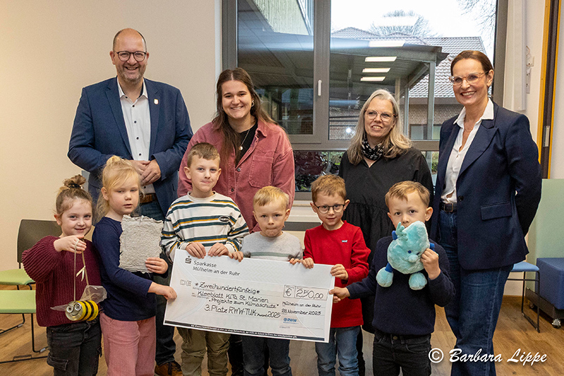 Den dritten Platz belegte der Kleeblatt Kindergarten St. Marien. Sie hatten ein Hochbeet mit Gemüse für die Zubereitung und den Verzehr im Kindergarten bepflanzt. Daraus entstanden Themen wie die Bedeutung von Wasser, Energie und gesunde Ernährung, über die in den Gruppen gesprochen wurde. Außerdem bastelten sie aus Recyclingmaterial tolle Dekorationen und Bienenhäuser. Aus Altpapier lernten die Kids, neue Papierbögen zu schöpfen.