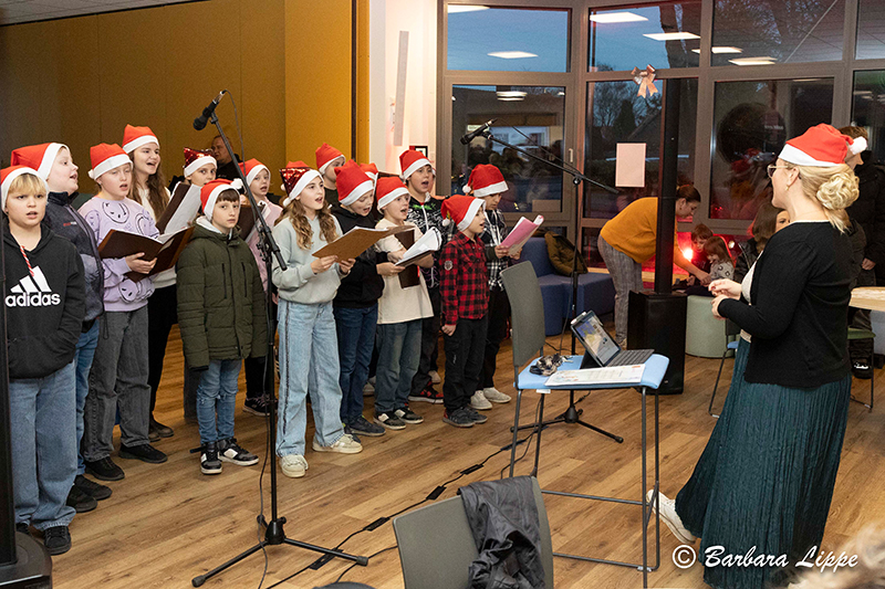 Dabei bildet das Forum den zentralen Ort, in dem die Besucher beisammen saßen und die gemütliche Stimmung genossen. Die 5a von Klassenlehrerin Anastasia Inhestern hatte als Chor für dieses Event einige Lieder zur Adventszeit vorbereitet.