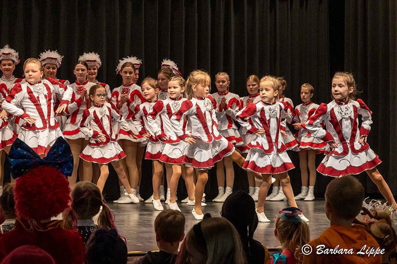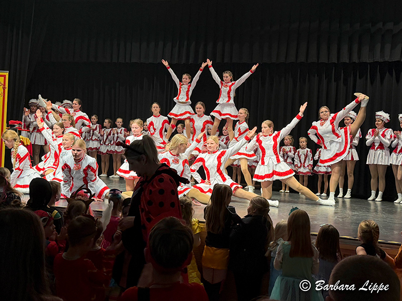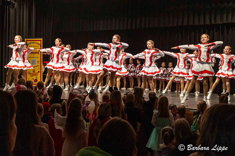 Am Sonntag wurde für die jüngsten Narren und Närrinnen ein buntes Event geboten. Mit dem Einmarsch der vereinseigenen Tanzgruppen gemeinsam mit ihrem Vereinsmaskottchen wurde der Kinderkarneval eröffnet. Die Junioren-, Junior und Senioren-Garde begeisterten das Publikum mit ihren Gardetänzen. Insbesondere die Kinder verfolgten die Darbietung mit großen Augen.