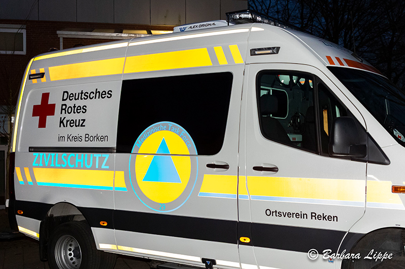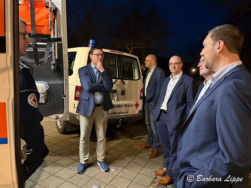 Vor der Übergabe erläuterte Rotkreuzleiter Stefan Niewerth den Gästen die Vorzüge des Katastrophenschutz-Fahrzeuges KTW Typ-B ZS. Der Krankentransportwagen kann in Reken und Umgebung vielseitig eingesetzt werden. Neben Sanitätsdiensten gehört der Zivil- und Bevölkerungsschutz zu seinen Einsatzbereichen. Das Fahrzeug wurde vom Bund für Bevölkerungsschutz und Katastrophenhilfe zur Verfügung gestellt.