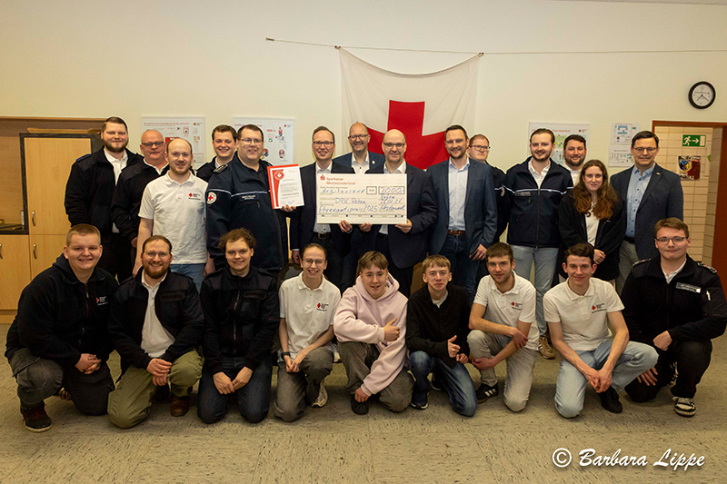 02.02.2026 Reken (bli). Der Ehrenamtspreis der Sparkasse Westmünsterland und der Gemeinde Reken wurde am vergangenen Donnerstag dem DRK-Ortsverein (OV) Reken überreicht. Zur Übergabe des Preises waren Bürgermeister Manuel Deitert, sowie Regionalleiter Hendrik Hesterwerth und Privatkundenberater Thomas Stenert von der Sparkasse Westmünsterland gekommen.
