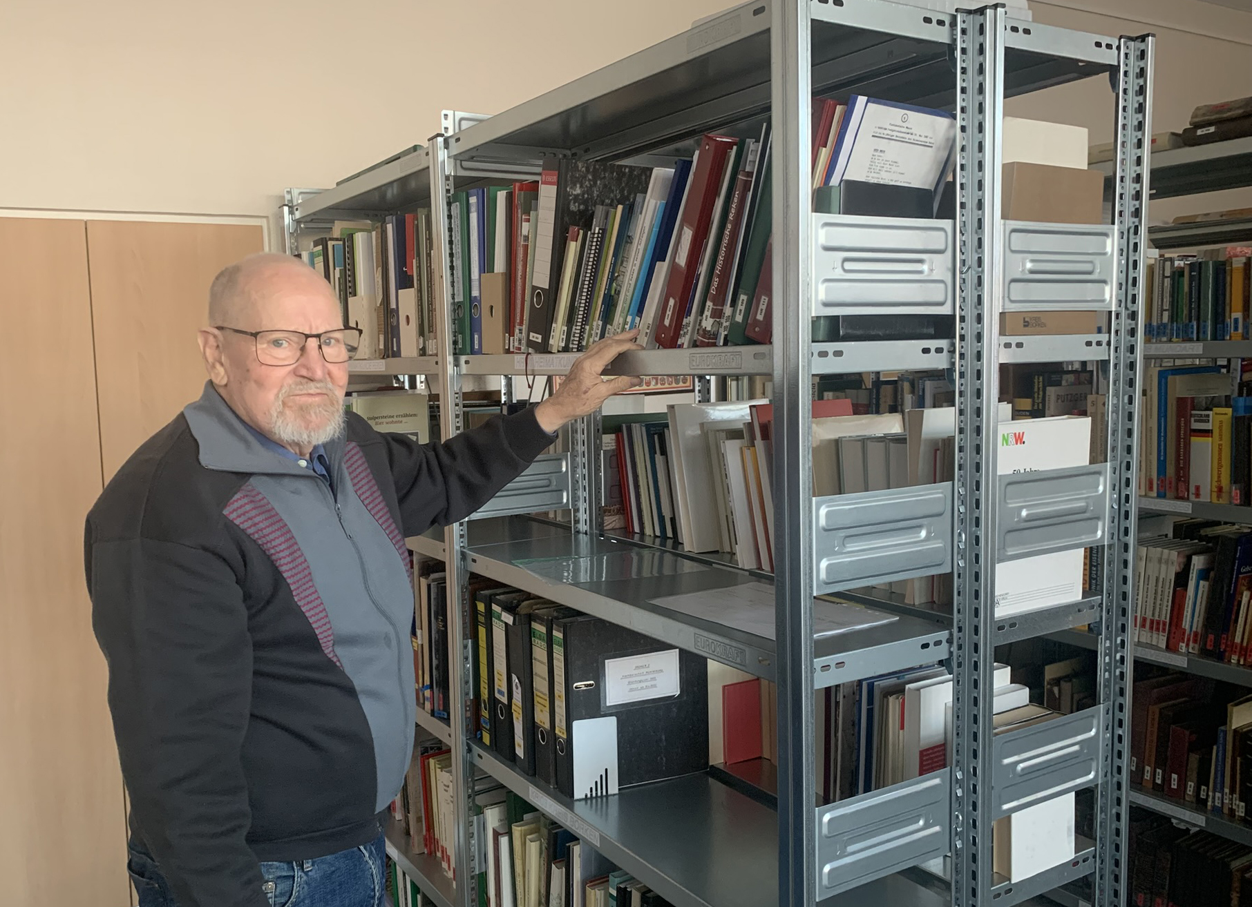 Titelbild: Der Herr der Bücher: Karl-Otto Biedermann führt die Bibliothek mit historischen Sachbüchern. Einige doppelte Exemplare können am kommenden Sonntag gegen eine Spende erworben werden.