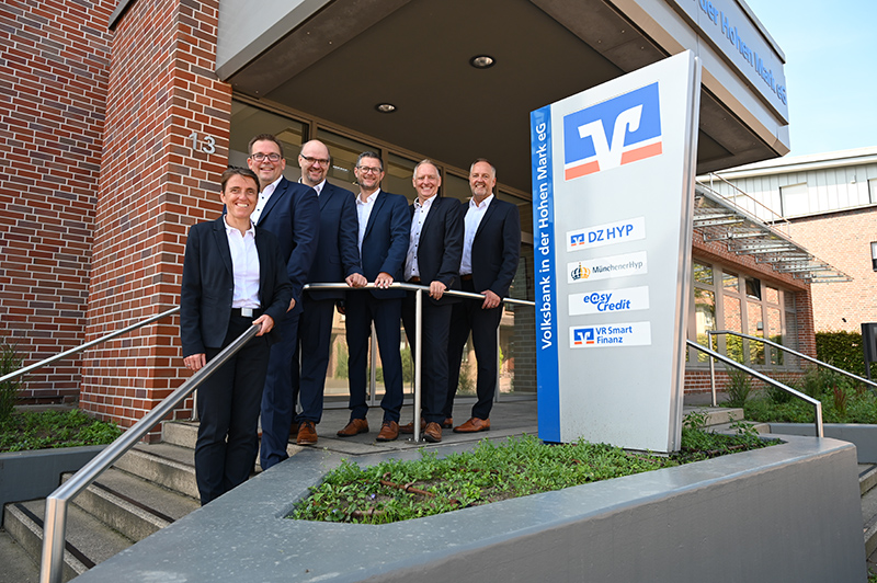 Titelbild (v.l.n.r.): Andrea Vehns (Generalbevollmächtigte) , Marc Trzcinski (Vorstandsmitglied Marktbereich), Christian Nordendorf (Vorstandsmitglied Marktfolge), Michael Schwartke (Vorstandsmitglied Marktbereich), Hubertus Rekers (Vorstandsmitglied Immobilienanlagen & Immobilientöchter), Martin Rekers (Vorstandsmitglied Betriebsbereich)