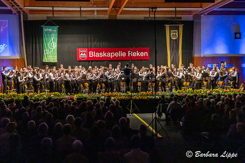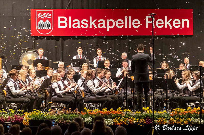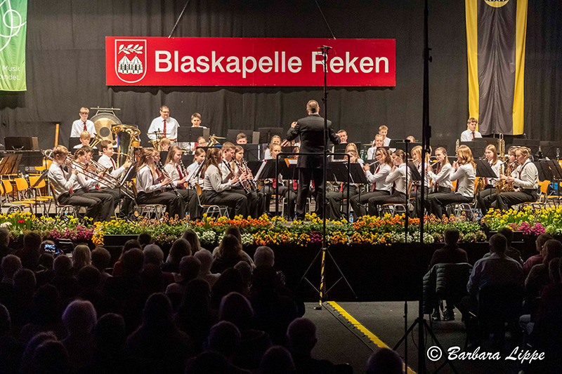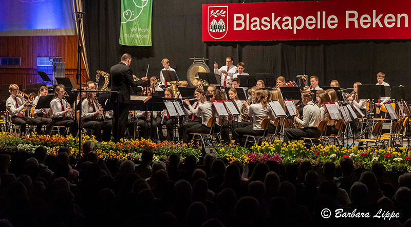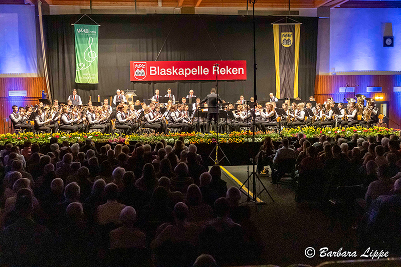 15.03.2026 Groß Reken (bli). „Willkommen im Aquarium der Blaskapelle Reken. Unsere heutige Reise beginnt im Wasser. Hier spielt die Musik in all ihren Farben, lassen Sie sich treiben“, dies war die Einführung in das Frühjahrskonzert der Blaskapelle Reken am vergangenen Samstag in der Sporthalle am Rathaus.