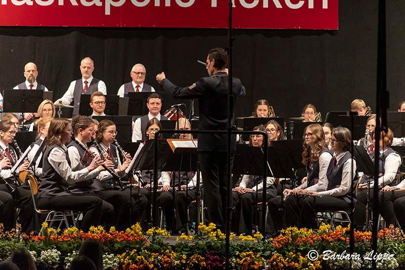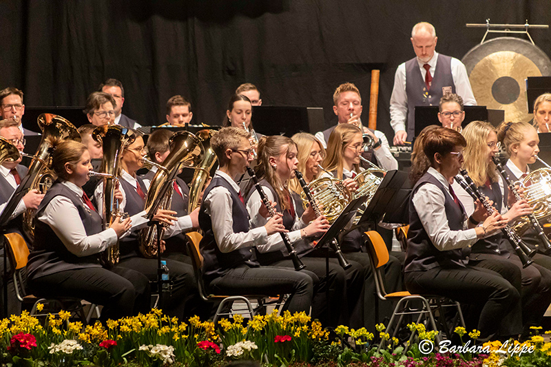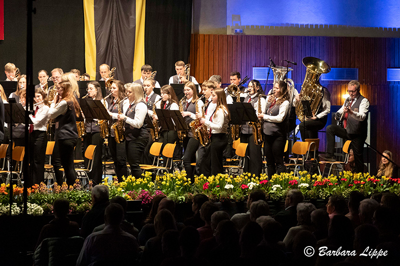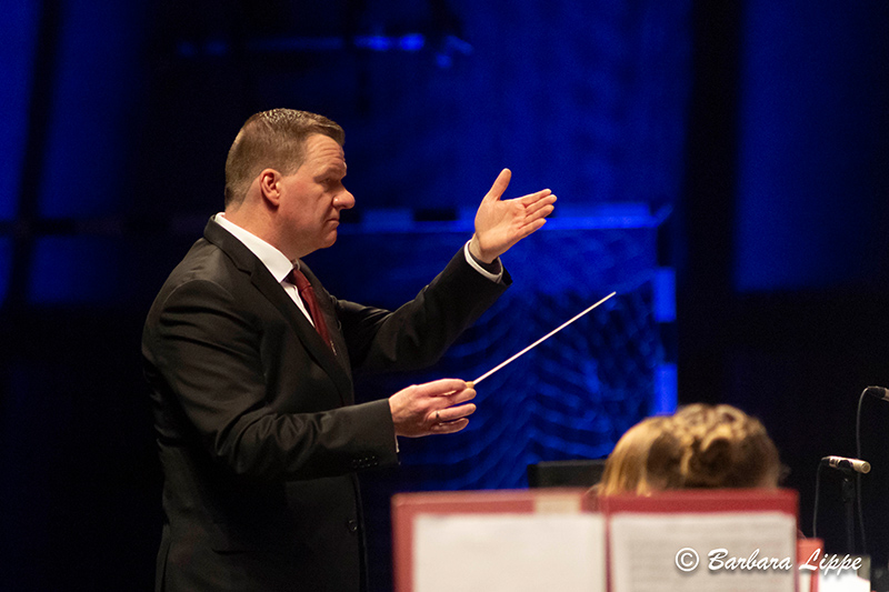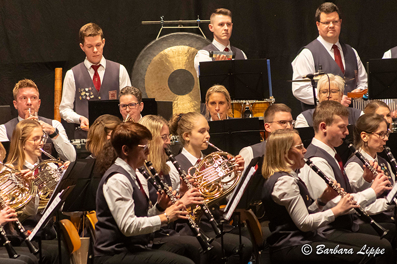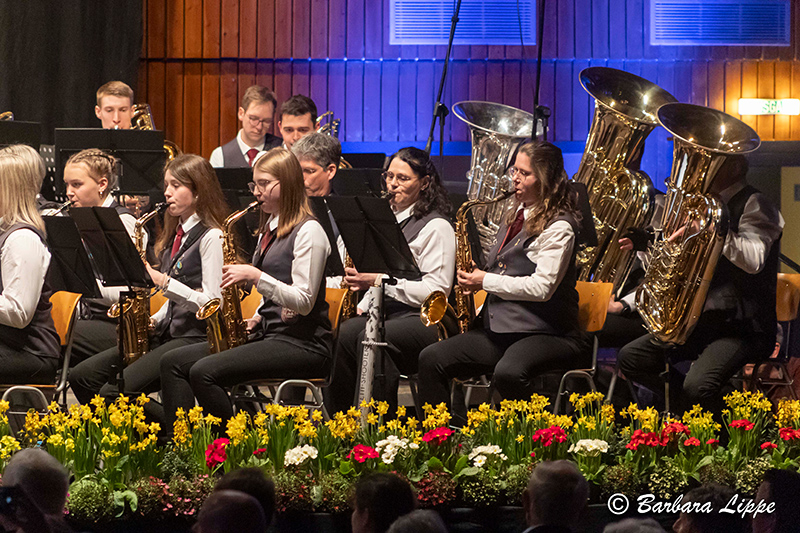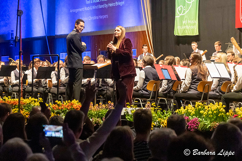 Nach der Pause wurde die Wasserwelt verlassen. Auch mit den klassischen Werken, wie dem bekanntem Marsch „Unter dem Doppeladler“ von Joseph Franz Wagner, dem „Hofkonzert mit Strauss“, mit berühmten Melodie des Wiener Komponisten, und mit „Celtic Crest“, ein konzertantes Werk von Christoph Walter, begeisterten das Hauptorchester das Publikum. Zahlreiche Handylichter schalteten die Zuhörer bei der Rock-Ballade „Purple Rain“ von Prince ein. Insbesondere die Solistin Christina Harpers bestach durch ihre außergewöhnliche Stimme. Mit einem 80er-Jahre Medley endete das Frühjahrskonzert. Mit Stehenden Ovationen bedankte sich das Publikum für dieses besonderes Konzerterlebnis.