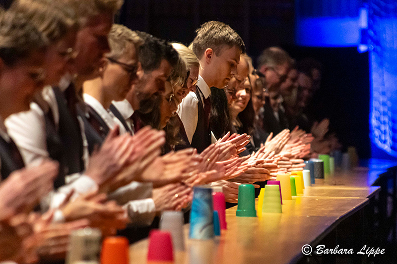 Während einer kurzen Umbauphase sorgten die Musiker mit einem Becher-Rhythmus-Spiel für Unterhaltung.