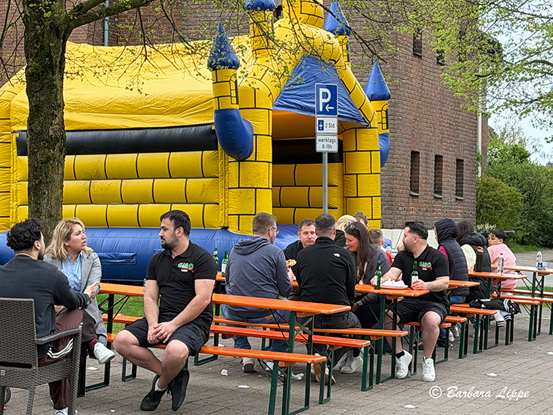 Viele Kunden waren gekommen, um zu gratulieren. Während die Erwachsenen beisammensaßen, konnten die Kinder in der Hüpfburg toben oder Zuckerwatte und Popcorn genießen.