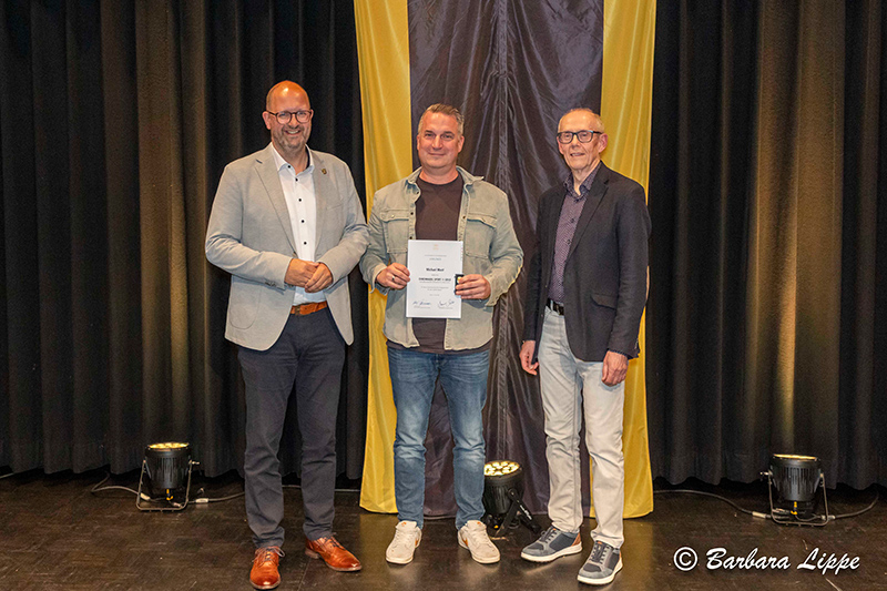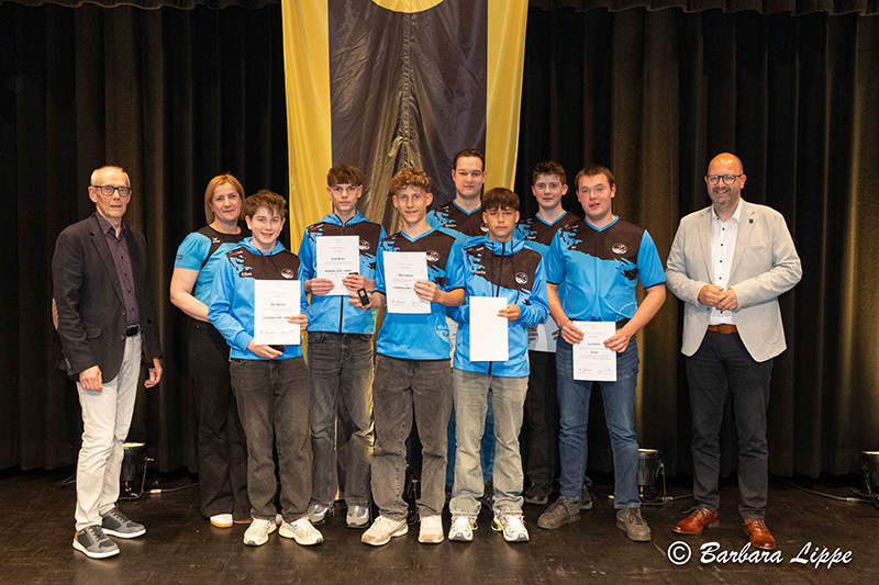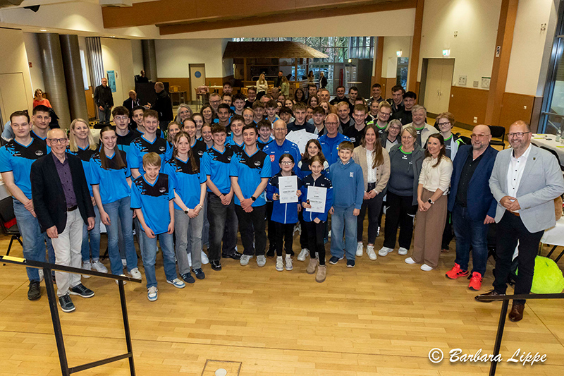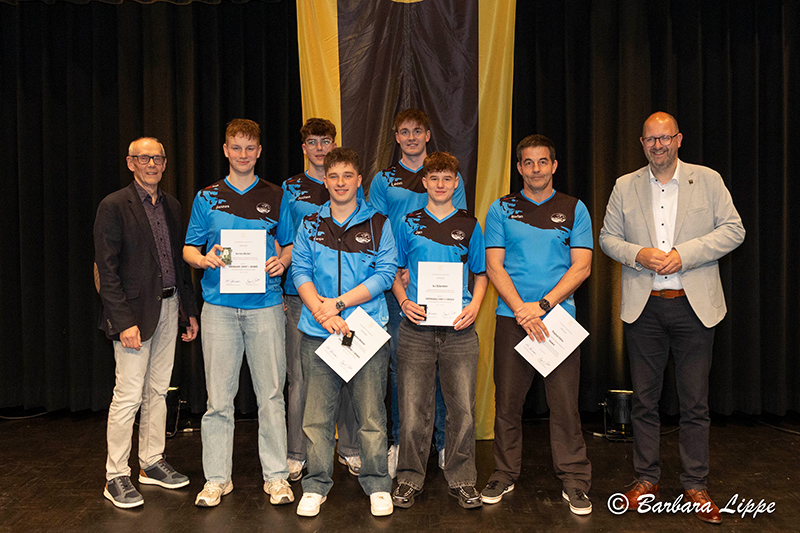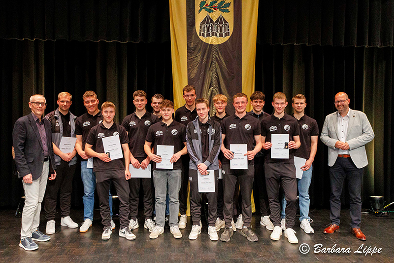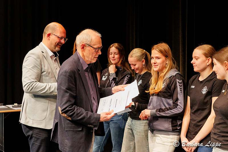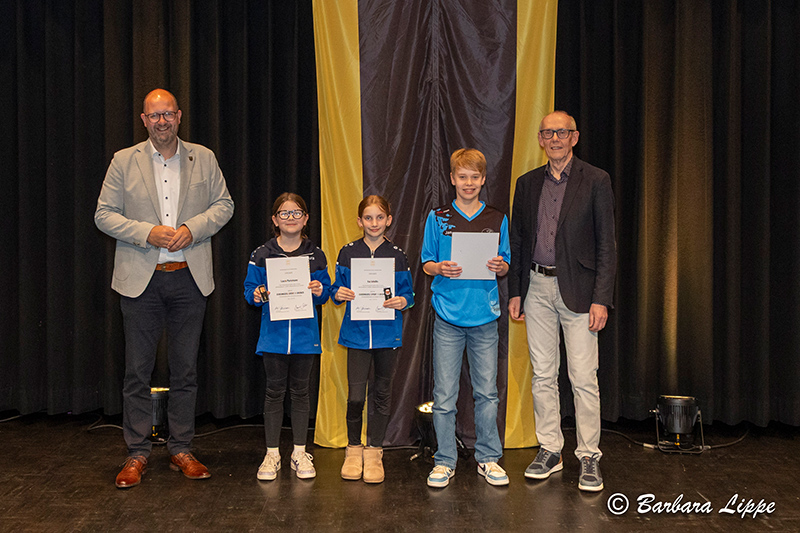 22.04.2026 Reken (bli). „Sport ist für jeden wichtig. Aber ich würde mich insbesondere freuen, wenn möglichst viele Kinder für Spaß an der Bewegung begeistert werden,“ betont Bürgermeister Manuel Deitert im Gespräch mit Raimund Stroick, der die Sportlerehrung unterhaltsam und informativ moderierte. 127 Sportler, Trainer und Ehrenamtler wurden am Dienstag vom GemeindeSportverband (GSV) Reken für ihre herausragenden Leistungen im RekenForum geehrt.