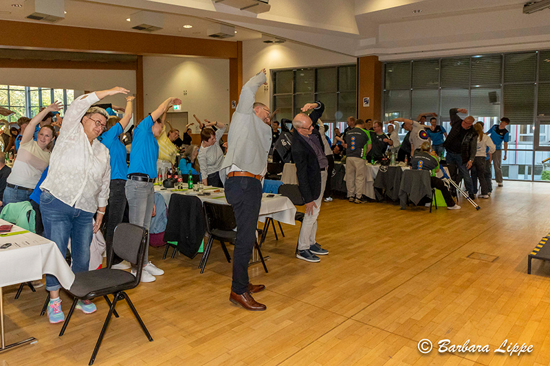 Im Rahmen der Sportlerehrung gaben Simone Werk und Svea Burgers, Fitnesstrainerinnen beim TSG Reken, einen kleinen Einblick in ihre Arbeit. Sie forderten alle Gäste im Forum dazu auf, einige Übungen zu machen.