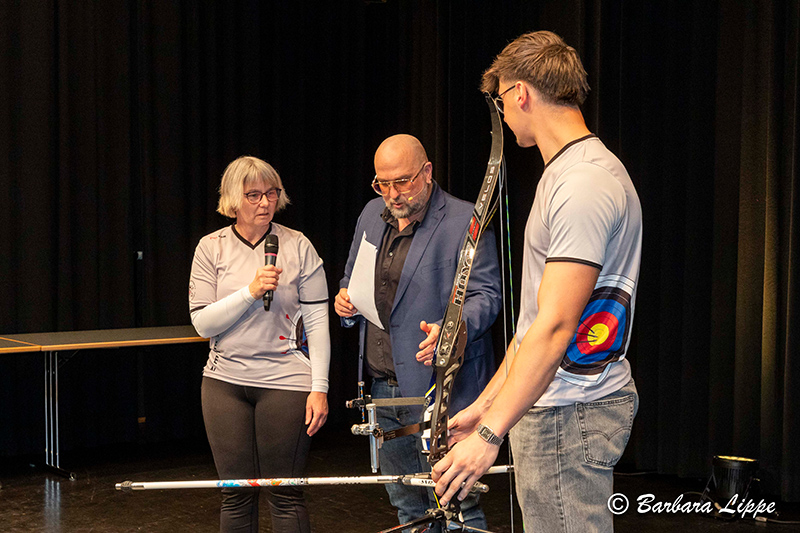 Zum Abschluss der Veranstaltung erläuterten Dorothee Harder und Jannis Robert vom SV Benediktushof – Bogenschießen – den Aufbau ihres Sportgerätes.