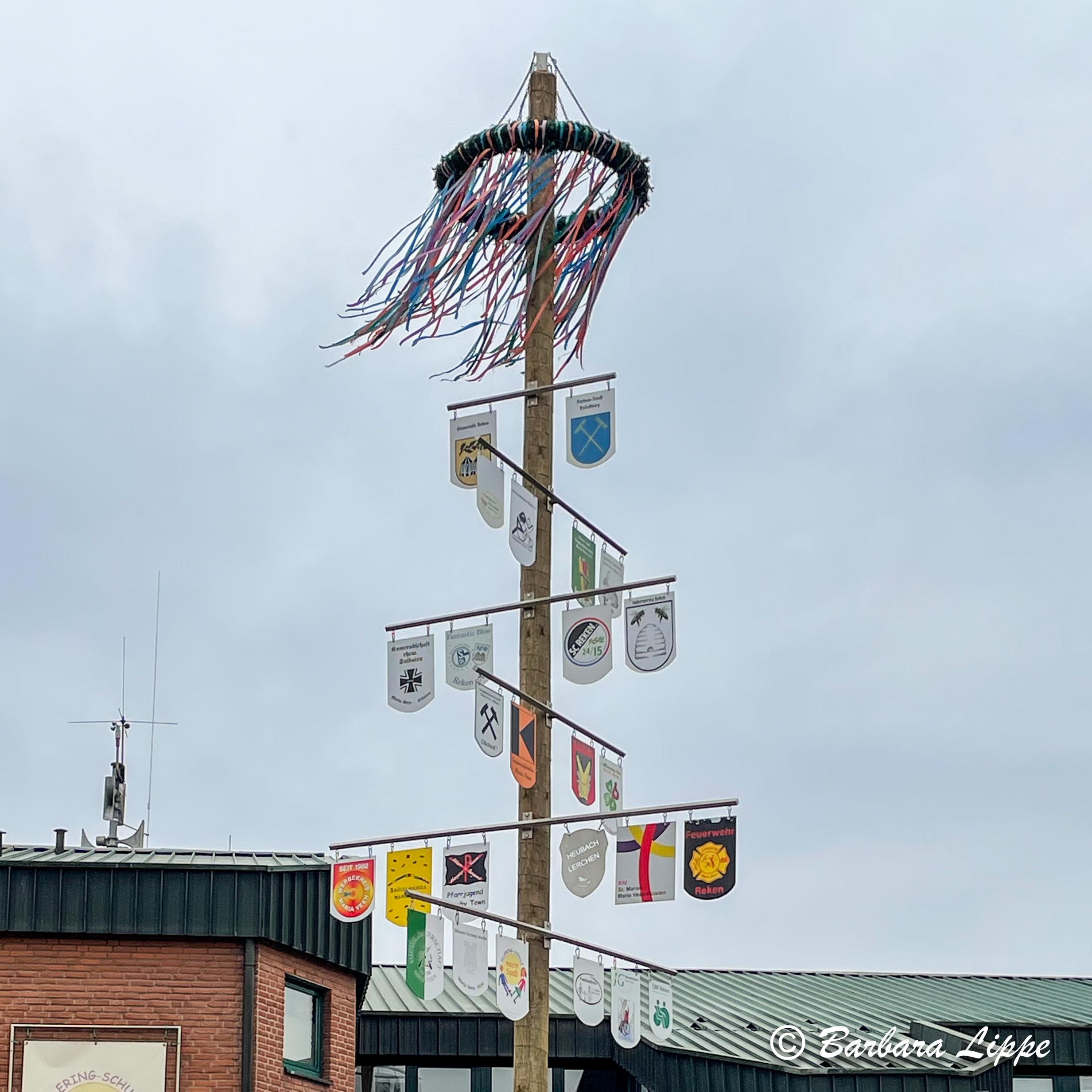 06.05.2024 Maria Veen (bli). Zahlreiche Wappen schmücken seit letztem Samstag wieder den Maibaum in Maria Veen.